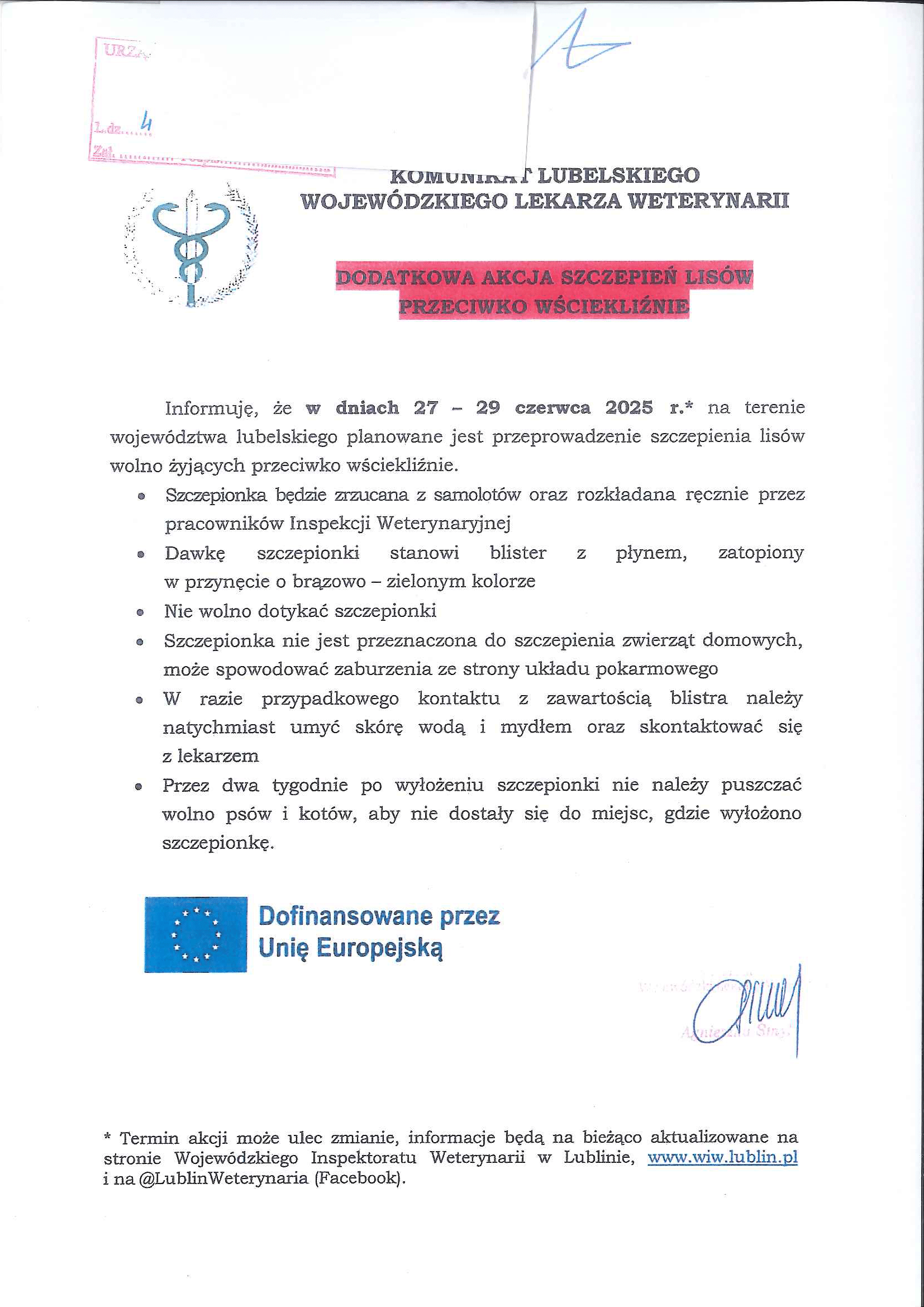 Komunikat Lubelskiego Wojewódzkiego Lekarza Weterynarii