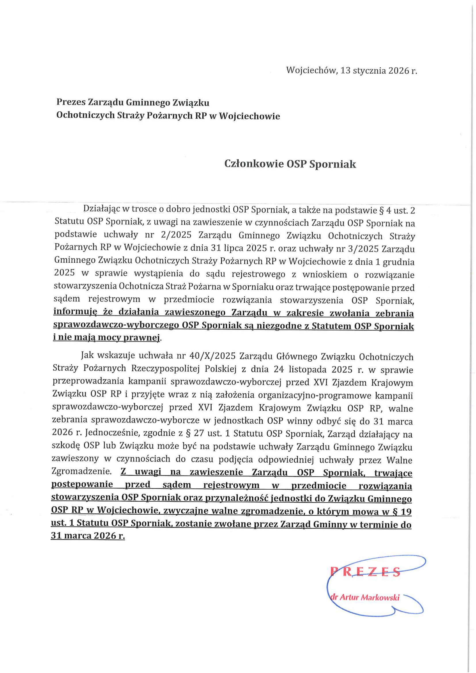 Informacja dot. zwołania zebrania sprawozdawczo-wyborczego w OSP Sporniak