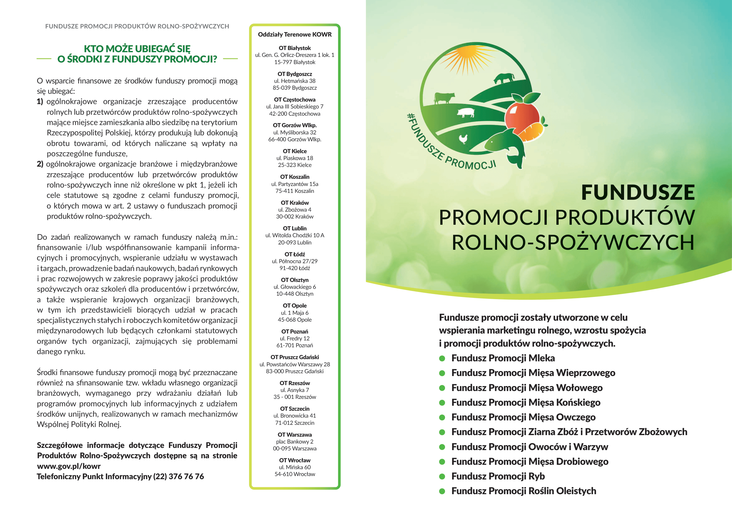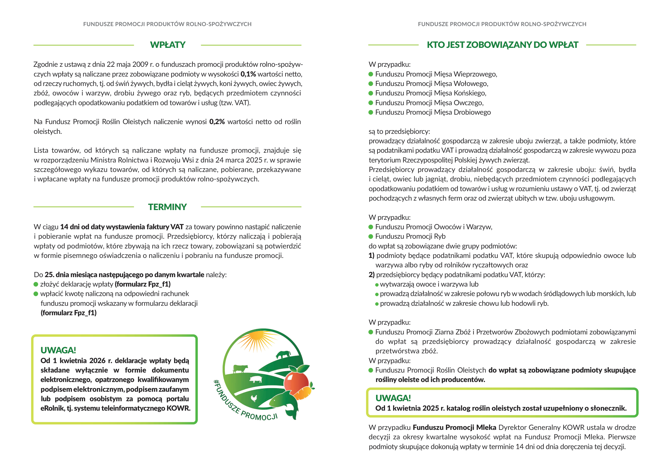 Krajowy Ośrodek Wsparcia Rolnictwa Oddział Terenowy w Lublinie informuje,że zgodnie z ustawą z dnia 22 maja 2009 r. o funduszach promocji produktów rolno–spożywczych (Dz.U. z 2025 r. poz. 683), od 1 kwietnia 2026 r. deklaracje wpłaty
