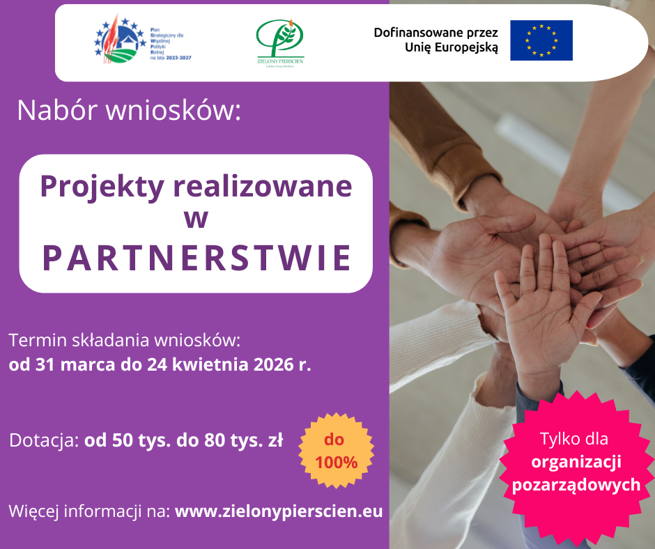 Lokalna Grupa Działania „Zielony Pierścień” zaprasza organizacje pozarządowe do składania wniosków na realizacje projektów partnerskich mających na celu aktywizację i/lub integrację społeczności lokalnych w tym seniorów i ludzi młodych.